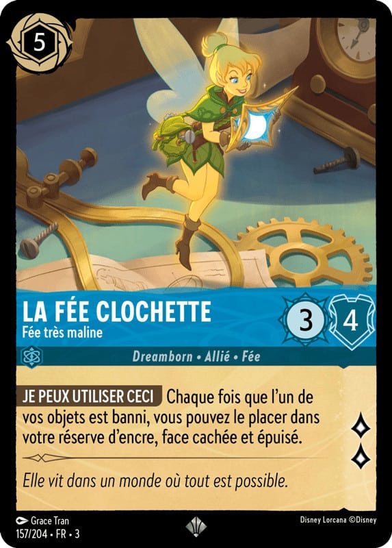 Outre le Génie des Mille et Une Facéties, d’autres cartes rares et puissantes se distinguent dans le jeu Lorcana. La Fée Clochette Éblouissante, par exemple, possède des capacités uniques pour contrôler le flux du jeu. Ses effets permettent de manipuler les cartes en jeu, offrant ainsi de nombreuses stratégies gagnantes.