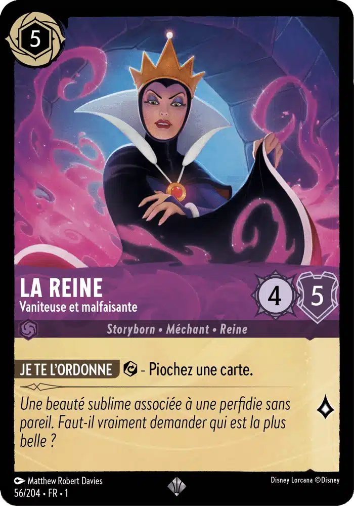 Le Capitaine Crochet Impitoyable, quant à lui, excelle dans les combats grâce à sa force brute et ses attaques dévastatrices. Cette carte représente une menace redoutable pour les adversaires les plus coriaces. Enfin, la Méchante Reine Maléfique, avec ses sorts maléfiques, peut rapidement faire basculer la partie en votre faveur. Son pouvoir de conditionnement permet d’influer sur le déroulement du jeu de manière décisive.